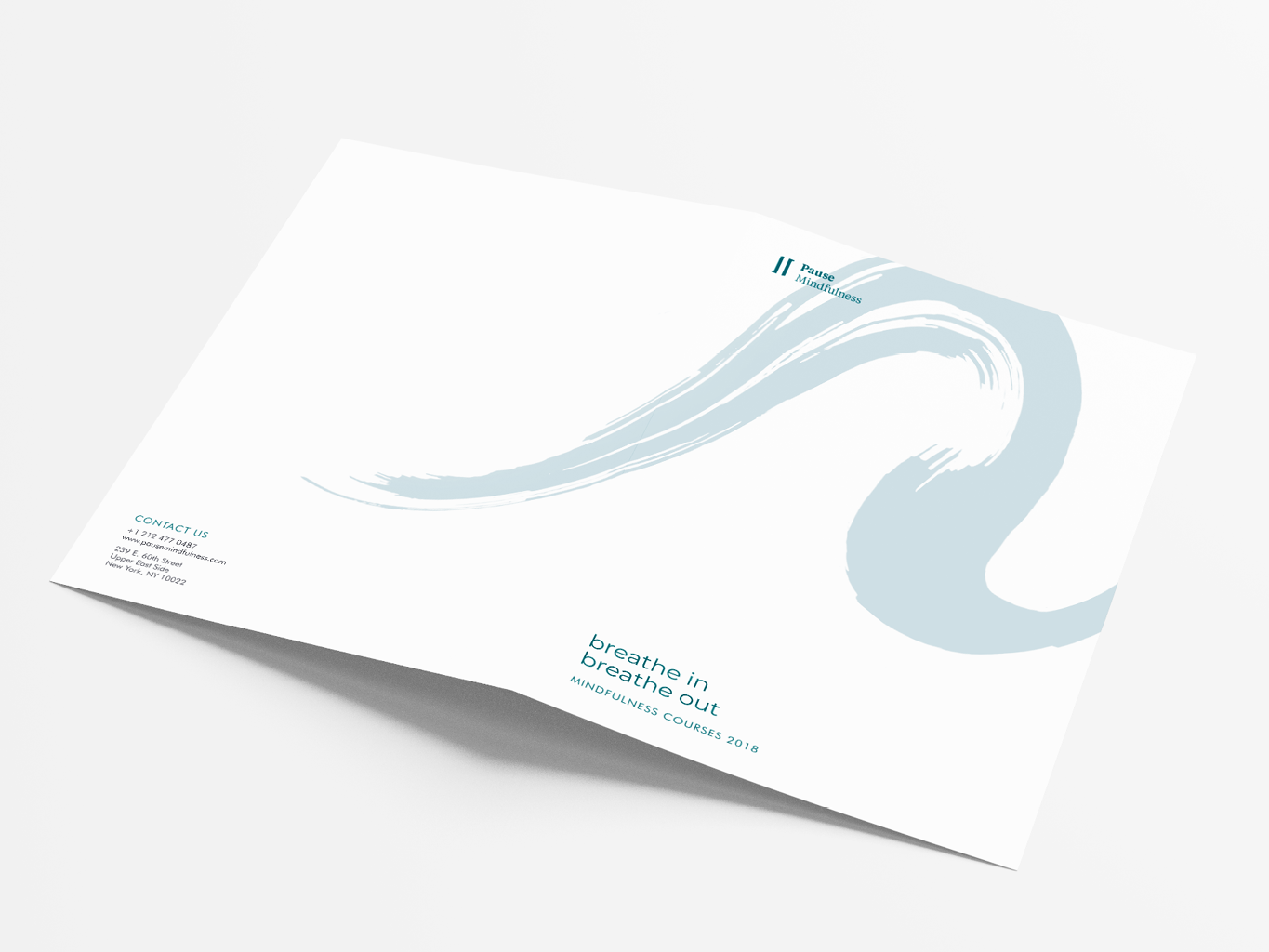 Pamphlet for a Mindfulness and meditation business located in New York City. The piece was aimed at a universal demographic, families, teenagers, young professionals, elderly, anything. Key elements are typesetting and use of colour to convey meaning.